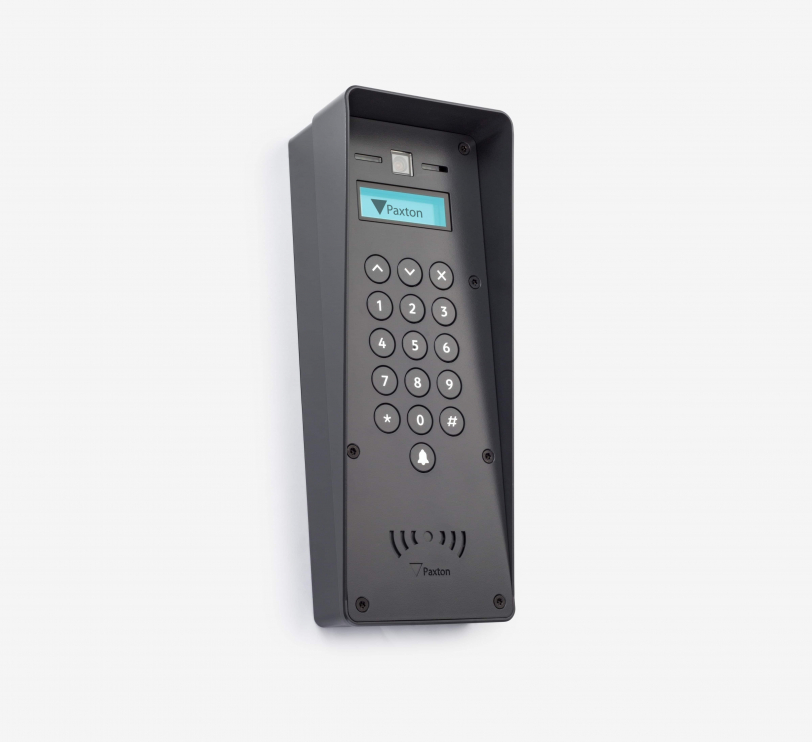 About – Entry is a door entry system that works standalone or alongside Paxton’s Net2 access control or Paxton10, access control and video management, combining door entry with key features of our access control software. The Entry standard panel is a robust external panel for use with our video door entry system. This panel comes in industry recognised anthracite grey (RAL7021), meaning it complements the windows and doors of many new builds and modern apartments.
