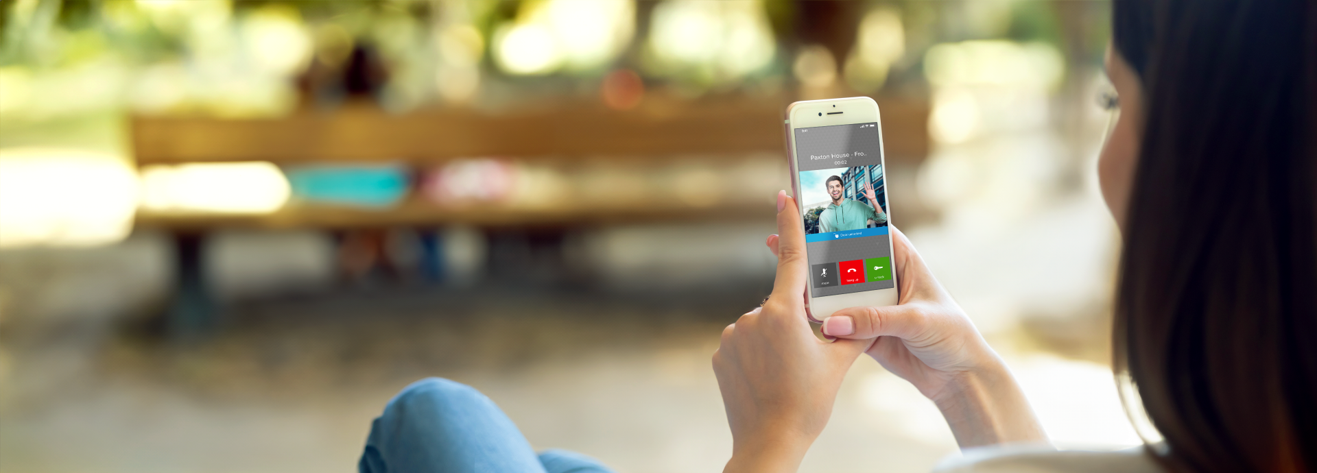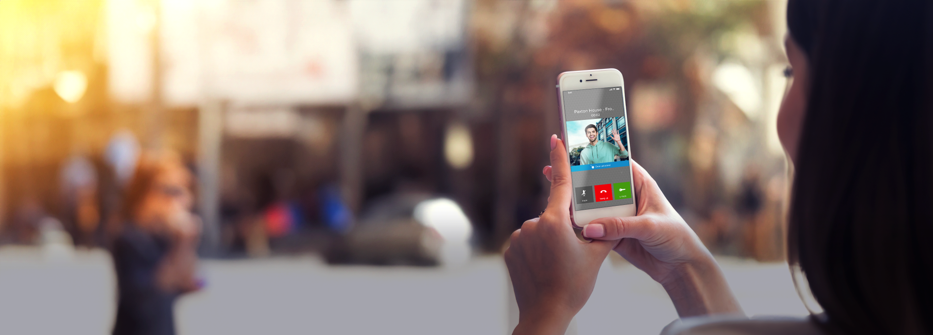 Answer the door and grant access to your building from a smartphone or tablet, from anywhere in the world!* Available for iOS and Android.