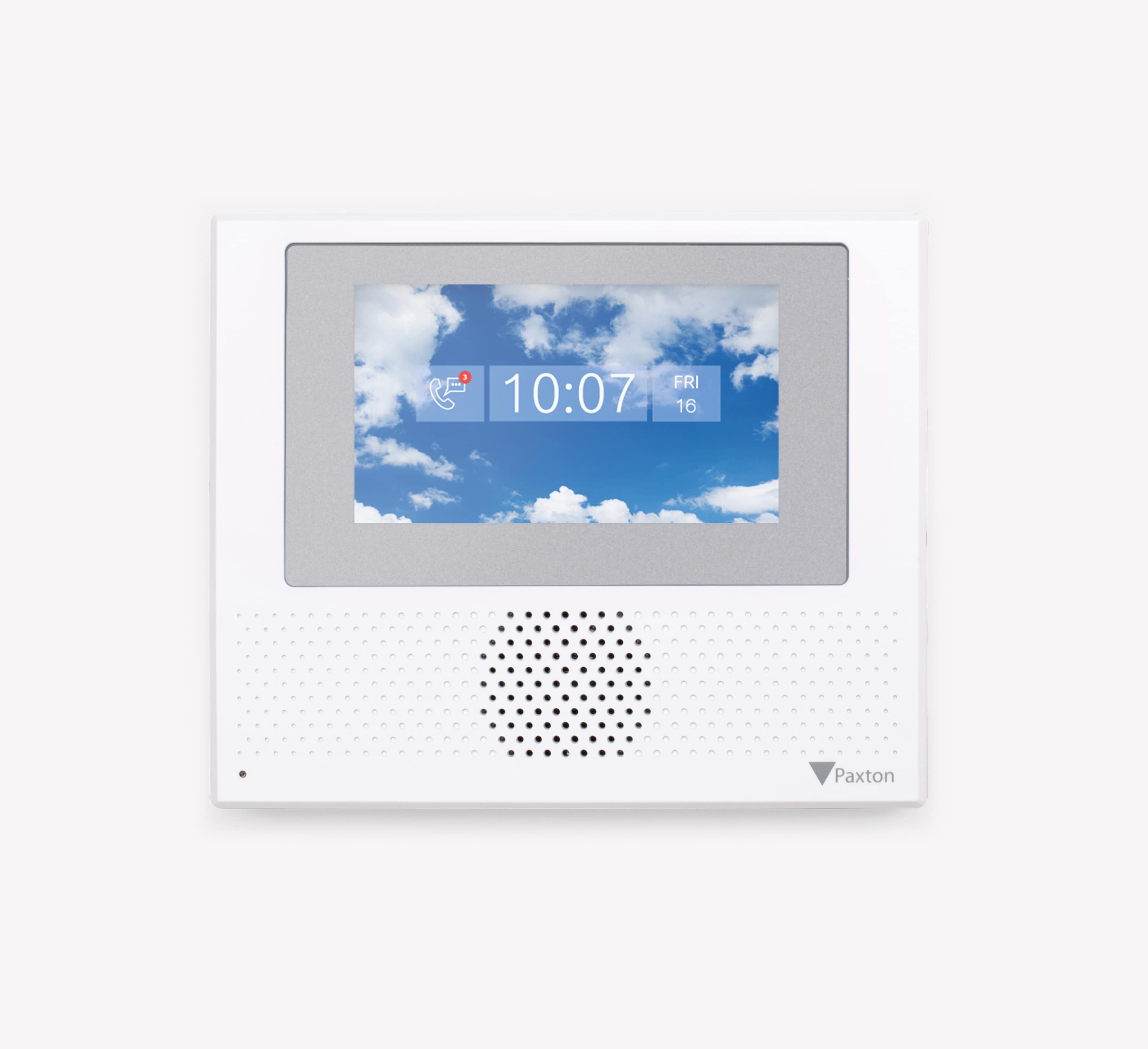 De monitor bevat een video voicemail functie waarmee een bezoeker een video bericht kan achterlaten wanneer u niet beschikbaar bent. Indien u niet gestoord wilt worden kunt u op de binnenpost de niet storen modus inschakelen zodat u de oproep niet ontvangt, het is mogelijk om de niet storen modus volgens een schema in te stellen. De twee configureerbare actieknoppen kunnen gebruikt worden om 2 uitgangen aan te sturen of om verschillende acties binnen het Net2 toegangscontrole systeem te starten. Actieknoppen zijn op dit moment nog niet te gebruiken met Paxton10. De binnenpost is tevens voorzien van een potentiaalvrij relais, waardoor het mogelijk is om een externe zoemer of flitser aan te sturen tijdens een oproep en een deurbeldrukker ingang.