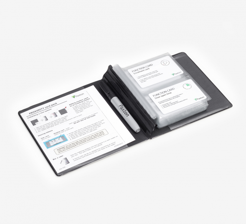 Informatie – Standalone kaart pakketten worden gebruikt bij Compact, Switch2, PaxLock Pro en Entry systemen. Een intuïtief schaduwkaart systeem wordt gebruikt voor een groter beheerdersgemak. Met de schaduwkaarten kunt u via één handeling de gebruikerskaarten blokkeren. De kaarten en schaduwkaarten worden geleverd in een handige map.
