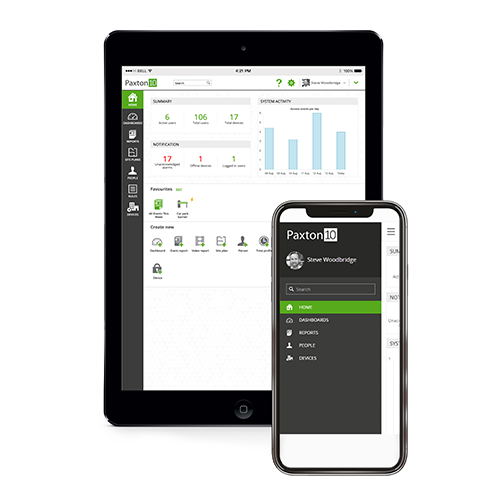 • Remote toegang: U kunt uw Paxton10 systeem eenvoudig op afstand beheren door de Remote toegang functie in de Paxton10 software. Om het systeem op afstand te kunnen beheren heeft u een internetverbinding nodig.