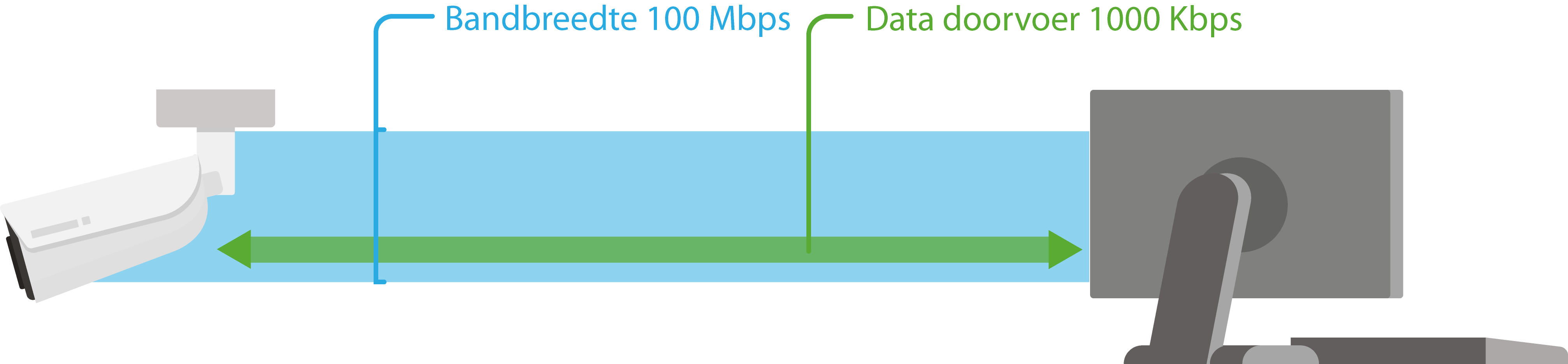 Wanneer via de cliënt de hoofdstream van een camera bekeken wordt zullen de camerabeelden gedownload worden. De camera zal dus een bandbreedte nodig hebben van 6Mbps om de beelden te versturen en de cliënt heeft 6Mbps bandbreedte nodig om de beelden te kunnen ontvangen.
