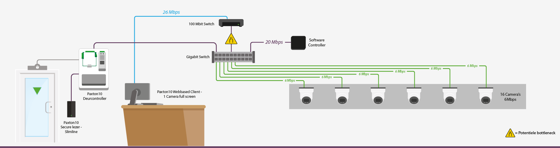 Voor een correcte werking van de Paxton10 hardware adviseren wij om gebruik te maken van minimaal een 100Mbit netwerk.