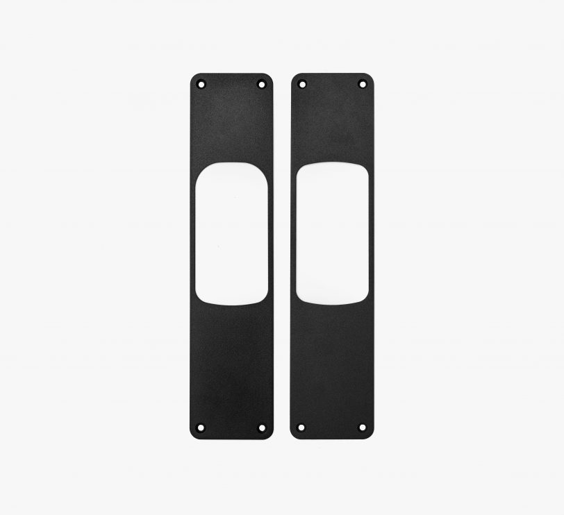 The PaxLock Pro täckplåtar gör att du kan installera PaxLock Pro på en dörr som tidigare haft ett handtag eller andra dörrbeslag, där borrhål eller märken är bredare än PaxLock Pro-enheten. Täckplåtarna döljer diskret alla kvarvarande hål eller märken, vilket gör att du sparar tid och pengar som skulle lagts ner på renovering.